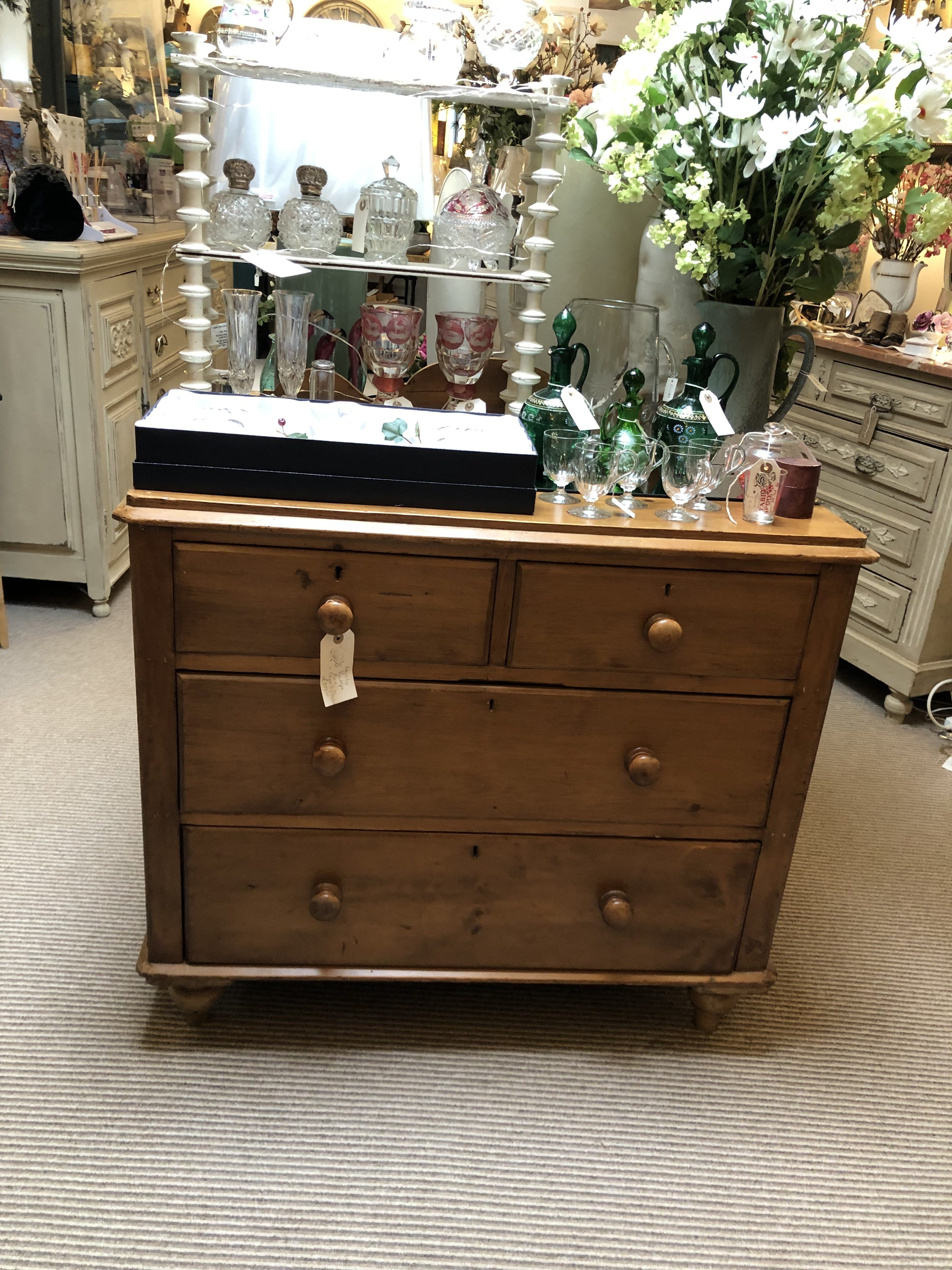 Lovely Vintage Pine Chest of Drawers Lovely vintage pine chest of drawers – £379 Measures: H: 81cm x W: 93cm x D: 49cm For more information please call 01451 798743 or email rosie@rosiebinteriors.co.uk Categories: Browse the Shop, Furniture